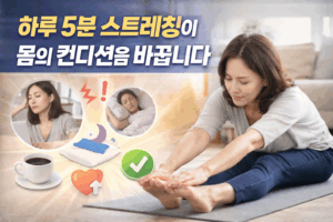 거창한 운동이 아니어도 괜찮습니다. 하루 5분만 투자해도 몸의 긴장이 풀리고 컨디션이 달라지는 것을 느낄 수 있습니다. 중요한 것은 완벽한 동작이 아니라 꾸준히 몸을 움직이는 습관입니다.